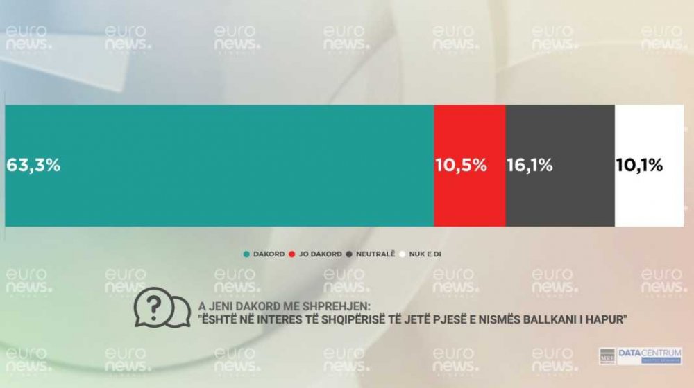 Euronews Albania tarafından yayınlanan veriler, halkın yüzde 63’ünün bölgesel iş birliği inisiyatifi ‘Açık Balkan’ın Arnavutluk’un çıkarına olduğunu düşündüğünü ortaya koydu.