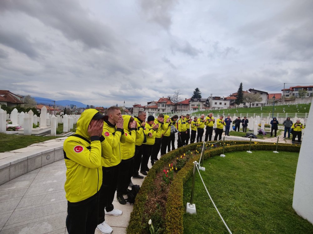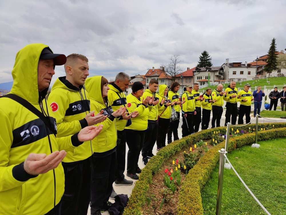 Sabahın erken saatlerinde başkent Saraybosna'daki Kovaçi Şehitliği'nde bir aray gelen grubun üyeleri, merhum Boşnak liderin mezarı başında dua okudu.