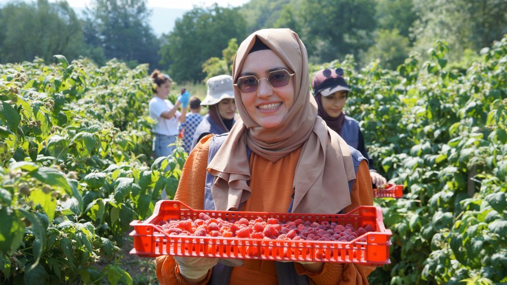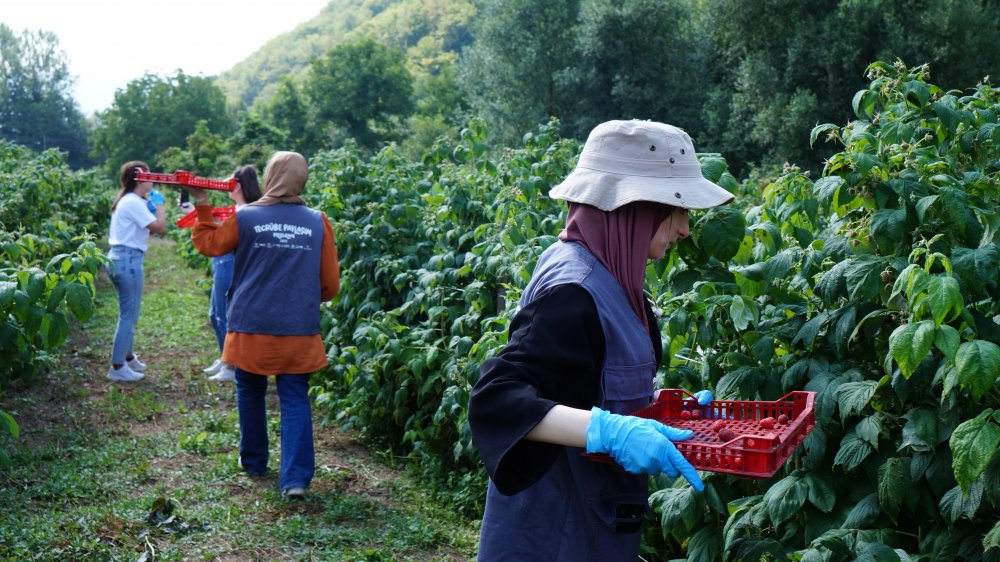 Gönüllü öğrencilerden Elif Gülmohar, tecrübe paylaşımı kapsamında farklı kültürleri tanıma fırsatı bulduğunu ifade ederek ilk defa ahududu topladığını söyledi.