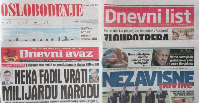 Bosna Hersek basınında bugün - 13 Eylül 2022