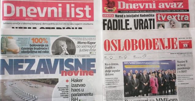 Bosna Hersek basınında bugün - 16 Eylül 2022
