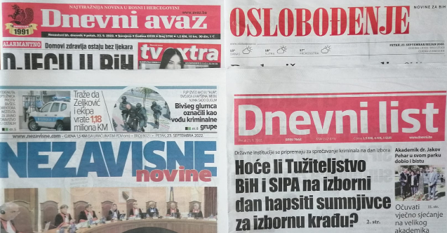 Bosna Hersek basınında bugün - 23 Eylül 2022