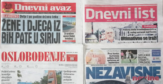 Bosna Hersek basınında bugün - 3 Ağustos 2022