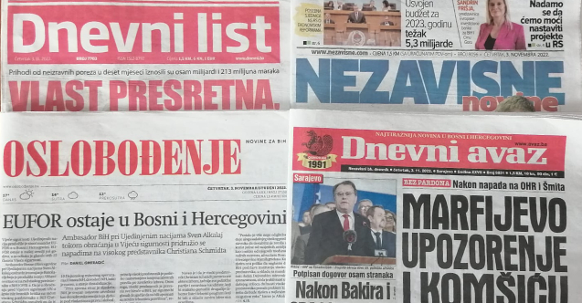 Bosna Hersek basınında bugün - 3 Kasım 2022