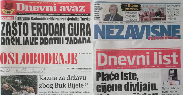 Bosna Hersek basınında bugün - 8 Eylül 2022