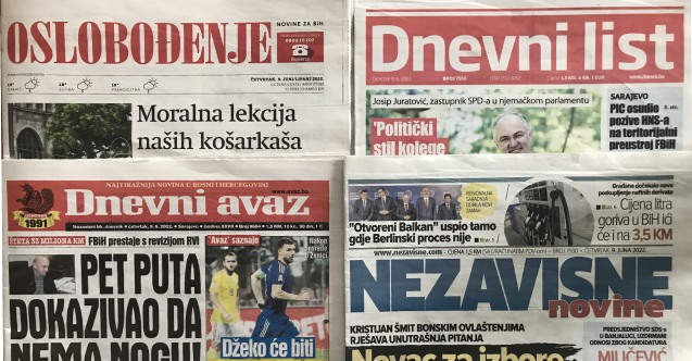 Bosna Hersek basınında bugün - 9 Haziran 2022