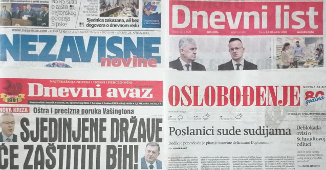 Dnevni avaz, Nezavisne novine, Dnevni list ve Oslobodjenje gazetelerinden öne çıkan haber başlıkları