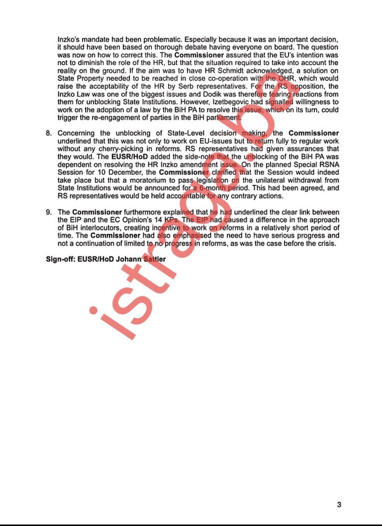 İddianın en büyük delili olarak Avrupa Birliği'nin Bosna Hersek Delegasyonu Başkanı Johann Sattler’in Dodik-Varhelyi görüşmesine ilişkin yazdıkları gösteriliyor.