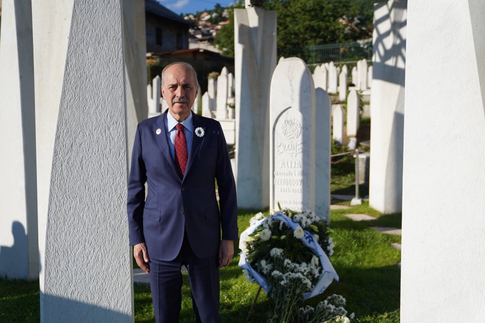 Bosna Hersek'in ilk cumhurbaşkanı merhum Aliya İzetbegoviç'in kabri başında dua eden Kurtulmuş'a AK Parti Genel Sekreteri Fatih Şahin, Türkiye-Bosna Hersek Parlamentolar Arası Dostluk Grubu Başkanı Refik Özen ile Kültür ve Turizm Bakan Yardımcısı Ahmet Misbah Demircan eşlik etti.