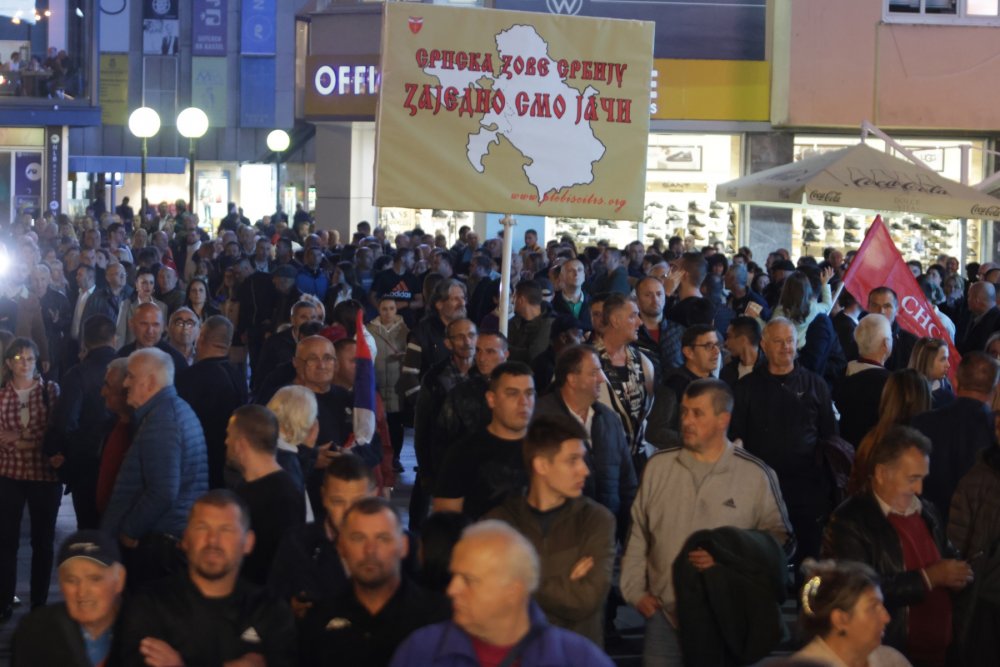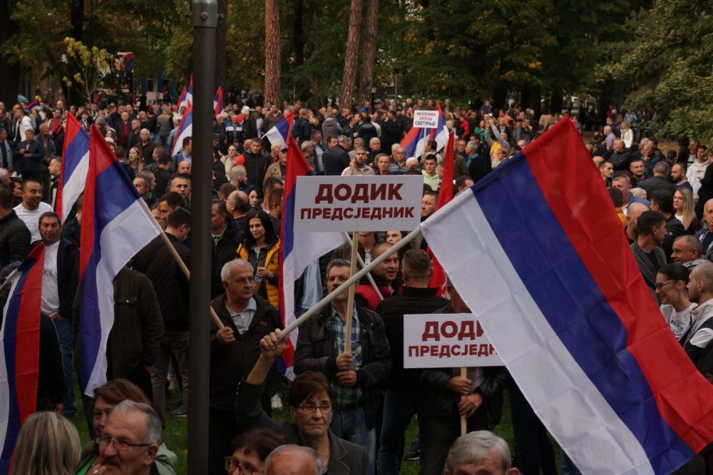 Bosna Hersek Merkez Seçim Komisyonunun Sırp Cumhuriyeti entite başkanlığı seçimlerini yenileme kararını protesto etmek için gerçekleştirilen mitinge, binlerce kişi katıldı.