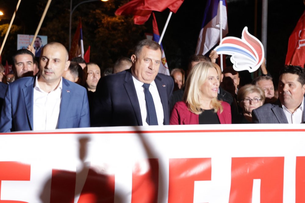 “Halkın seçimlerde ortaya koyduğu iradeyi koruma” çağrısına kulak veren göstericilere hitap eden Dodik, Demokratik Eylem Partisi (SDA) Genel Başkanı Bakir İzetbegovic'e hakaretler savurdu.