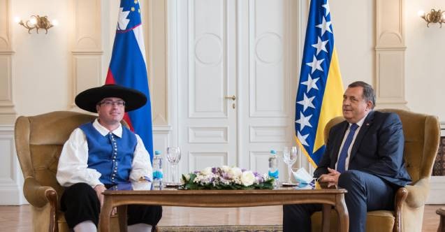 Sloven büyükelçi Damiyan Sedar, Bosna Hersek Devlet Başkanlığı Konseyi Başkanı Milorad Dodik'e güven mektubunu geleneksel kıyafetleriyle sundu.