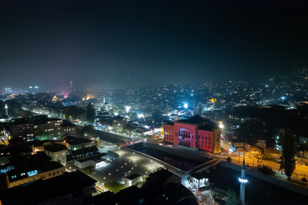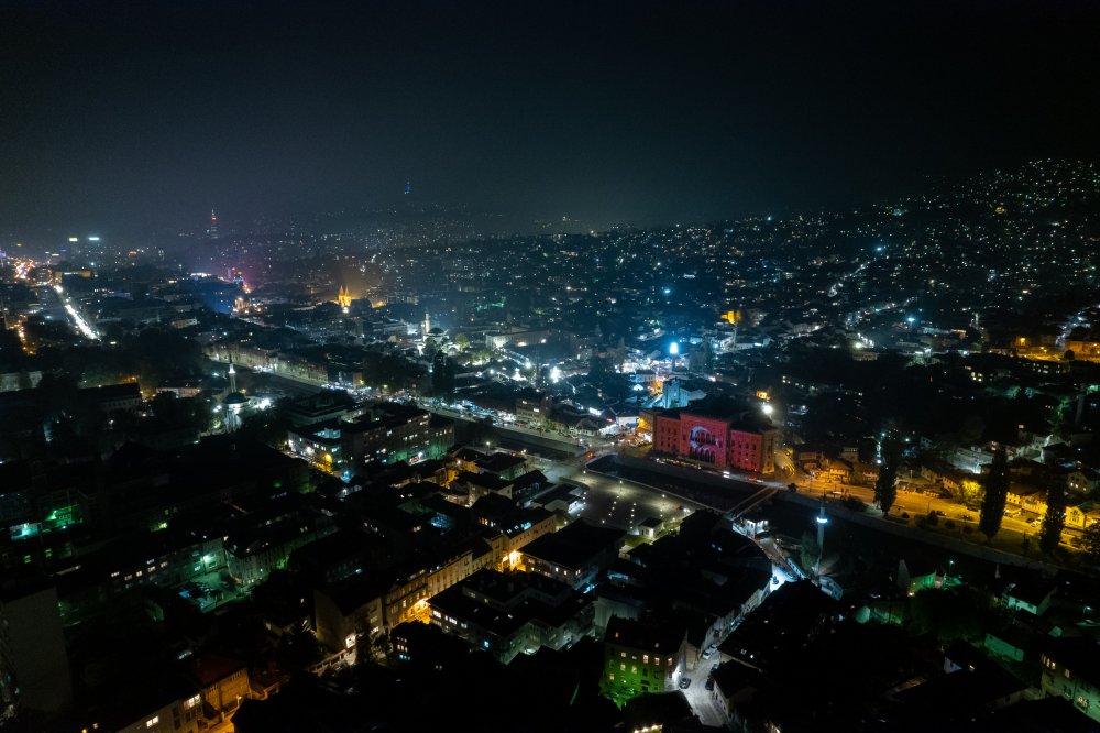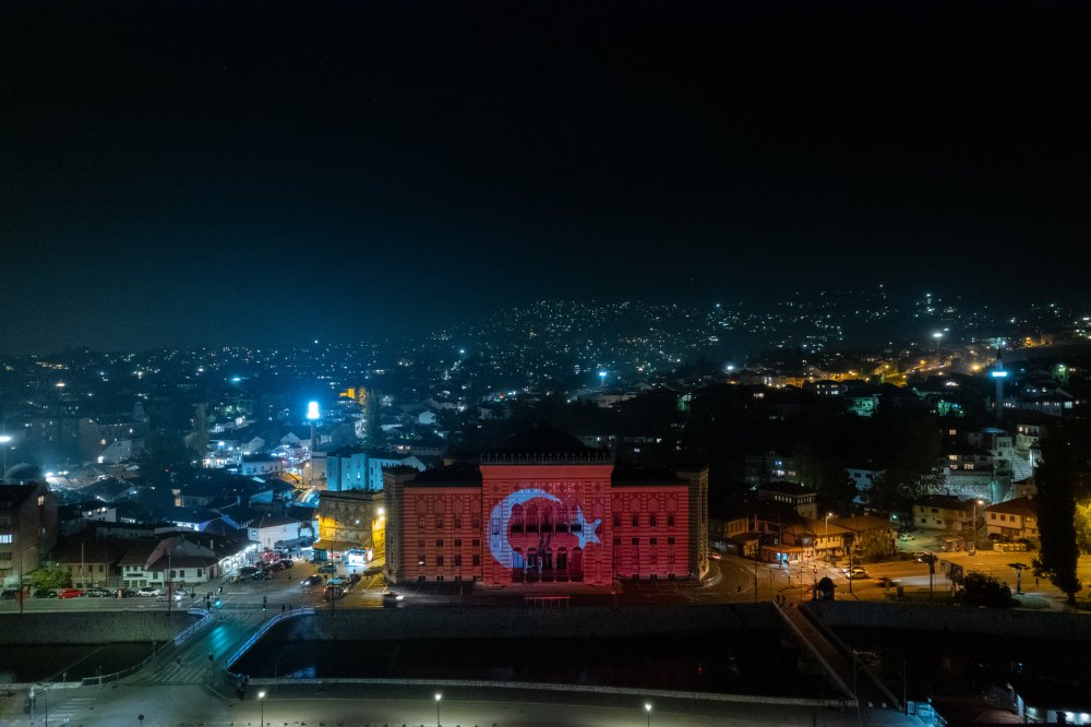 29 Ekim Cumhuriyet Bayramı dolayısıyla Bosna Hersek'in başkenti Saraybosna'nın en önemli sembollerinden tarihi Vijecnica Kütüphanesi, Türk bayrağı ile ışıklandırıldı.
