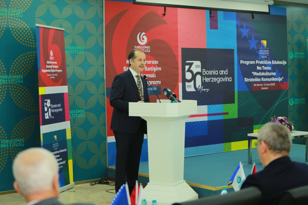 Büyükelçi Adis Alagiç ise Yunus Emre Enstitüsünün Balkanlardaki barışın daha da güçlendirilmesi adına oldukça önemli bir misyon edindiğine dikkati çekerek, Yunus’un evrensel barış mesajını, Enstitünün yürütmüş olduğu eğitim, kültür ve sanat faaliyetleri kapsamında başarıyla bütün dünya ülkelerine ulaştırdığını ifade etti.