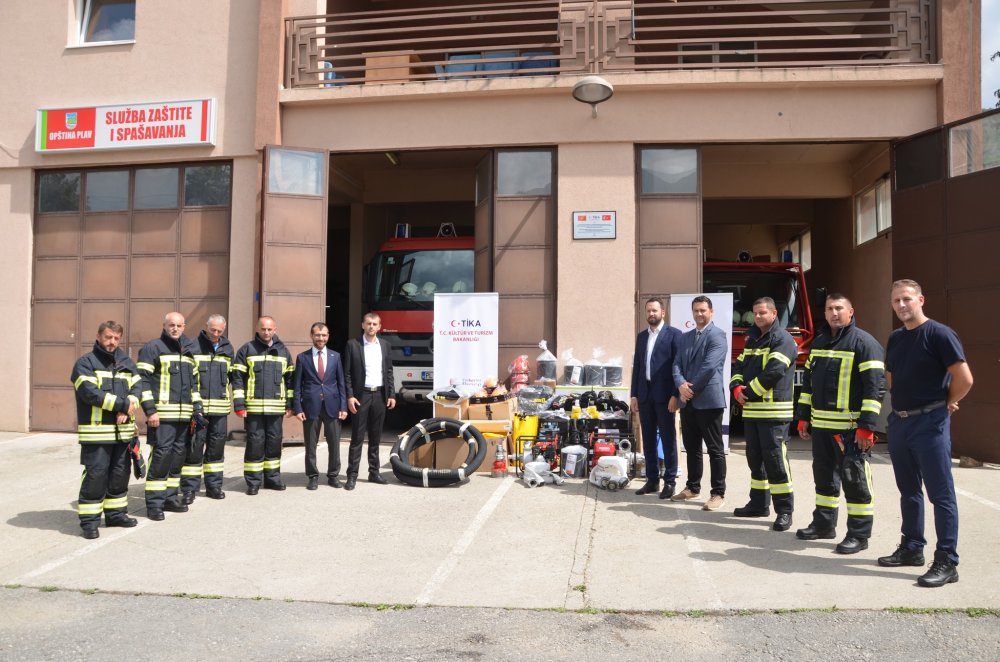 Açıklamada, "Yaklaşık 500 km² sorumluluk alanına ek olarak çevredeki belediyelere de destekte bulunan Plav Belediyesi Koruma ve Kurtarma Merkezi’ne, TİKA tarafından yangın söndürme ve kurtarma ekipmanları ile koruyucu elbise temin edildi." ifadelerine yer verildi.