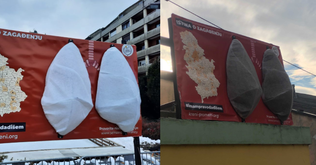 Sırbistan’da farklı kentlerde reklam panolarına yerleştirilen akciğer modelleri, hava kirliliğin etkisini gözler önüne seriyor.