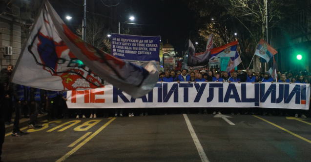 Belgrad'da toplanan aşırı sağcı Sırplar, ABD ile Avrupa Birliği'nce (AB) desteklenen, Sırbistan-Kosova ilişkilerinin düzeltilmesini hedefleyen "Fransız-Alman Planı"nı eleştirdi.