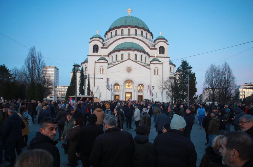 Sırbistan bayraklarının açıldığı gösteride, "Sırbistan'ı unutma, koru ve verme" sloganları atılırken, Vucic'e istifa etmesi ve erken seçim ilan etmesi çağrısı yapıldı.