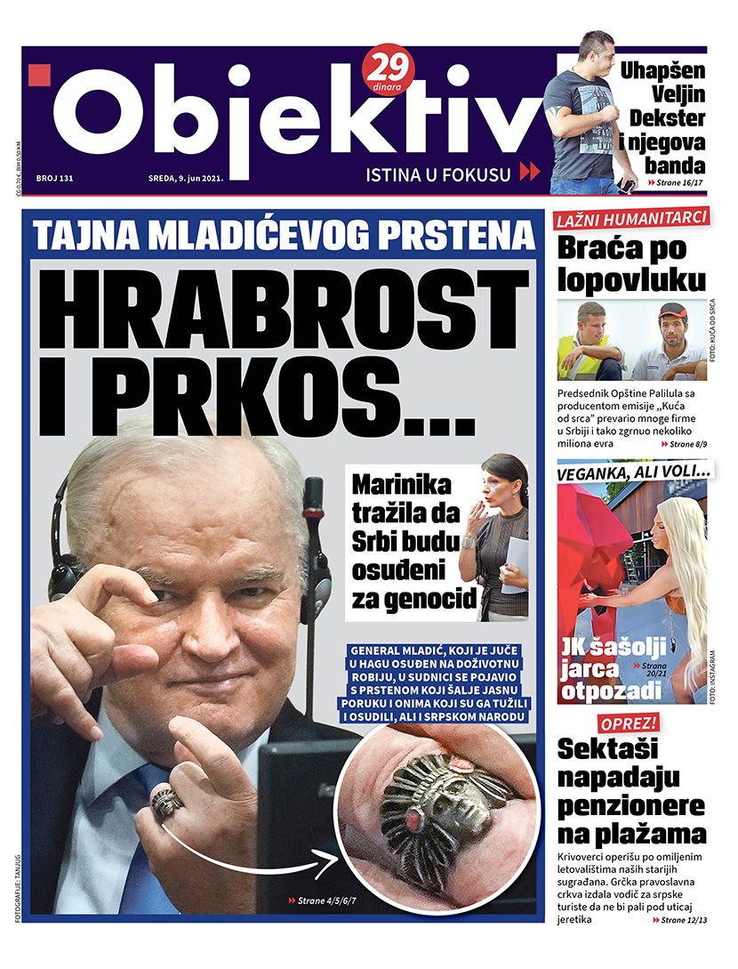 Objektiv gazetesi, “Mladiç’in gizemli yüzüğü: Cesaret ve direniş” şeklindeki manşetle çıktı.