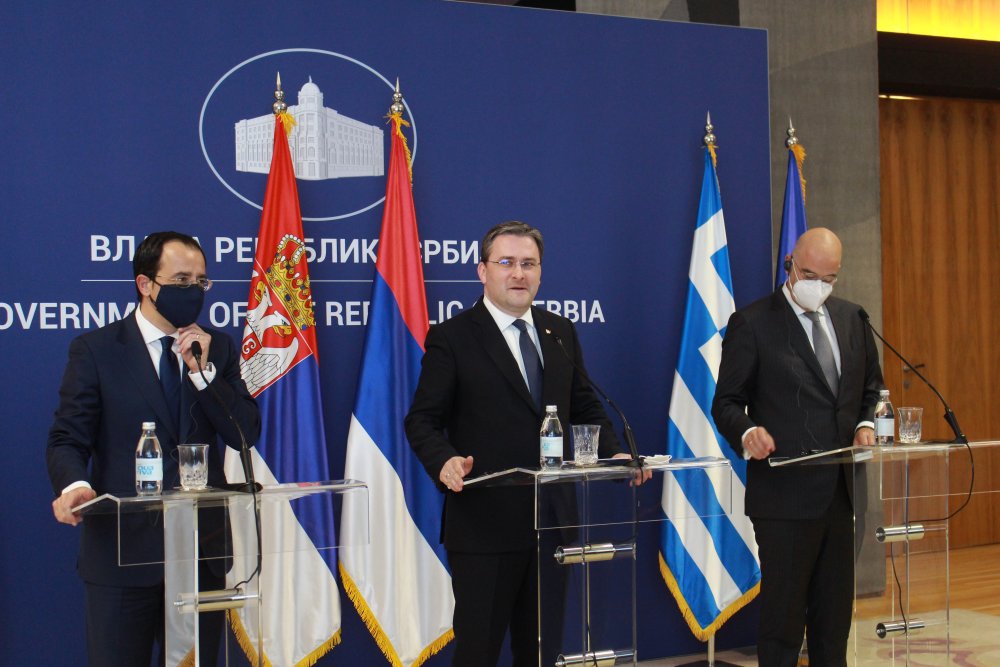 Sırbistan Dışişleri Bakanı Nikola Selakoviç, Yunanistan Dışişleri Bakanı Nikos Dendias, Kıbrıs Rum Kesimi Dışişleri Bakanı Nikos Hristodulis, Sırbistan’ın başkenti Belgrad’da bir üçlü zirve gerçekleştirdi. 5 Nisan Pazartesi günü gerçekleştirilen görüşmede Dendias’ın Sırbistan’ı Türkiye’ye karşı uyarması dikkat çekti.