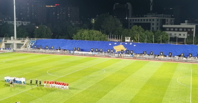 Kosovalı taraftarlar, İspanya’nın Kosova’ya yönelik çirkin tutumuna stadyumda açılan dev Kosova bayrağı ve “Kosova Cumhuriyeti’ne hoş geldiniz” mesajıyla cevap verdi.